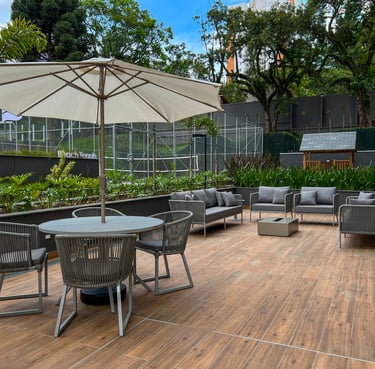 Mobiliário externo personalizado para você. Escolha entre uma variedade de opções.
